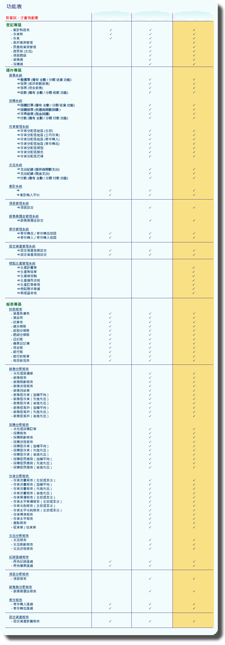 功能表 - 企業資源計劃(ERP)系統